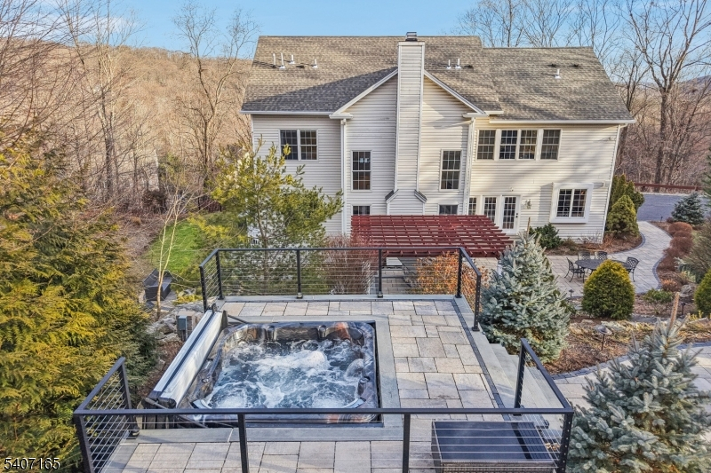 Discover the ultimate luxury retreat in this immaculate Ringwood colonial nestled on 3.2 serene acres. Built in 2004 and meticulously updated, this turn-key residence blends sophisticated architecture with modern comforts. A grand two-story foyer opens to an elegant interior featuring 9'+ ceilings, hardwood floors, and abundant natural light throughout. At the heart of the home is a gourmet eat-in kitchen with recently upgraded granite counters/designer backsplash that flows into a magnificent two-story great room with a fireplace and floor-to-ceiling windows. A formal dining room, living room, home office, and a powder room complete the first level. Upstairs, find 4 bedrooms and 3 full baths, including a primary suite with a tray ceiling, spa-like bath, and walk-in closet. The expansive walk-out basement features high ceilings, a gym, ample space for recreation and everyday living, and an updated powder room. Peace of mind is guaranteed with a new roof and gutters (2022), a new furnace (2025), an updated backyard entertaining space (2021), a cutting-edge Crestron smart home system with 6-zone Sonos sound (2023), and a whole-house generator. Outside, the resort-style backyard is perfect for both quiet relaxation and hosting, boasting multiple patios, an outdoor kitchen, a fire pit, and an elevated hot tub deck. Experience total privacy and modern convenience all within easy reach of NYC.