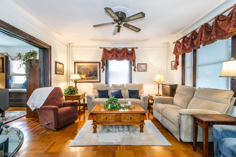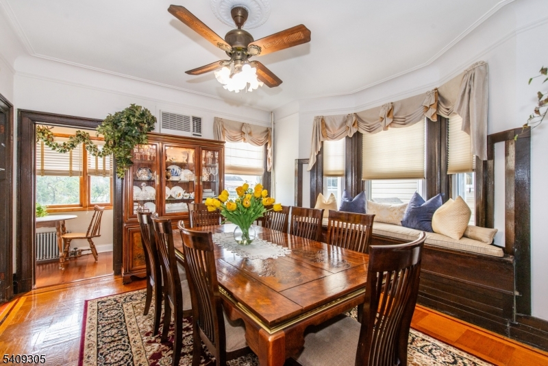 Pretty as a picture, this well-maintained 4-Bedroom, 2 Bath single family home in the desirable Woodcliff section of North Bergen boasts pride of ownership! A comfy 3-season sunroom welcomes you, the perfect place to enjoy your morning coffee. Enter the hallway to the living room and dining room w. window seat and tiled gas fireplace. Architectural details like stained glass, high ceilings, crown moldings and original parquet floors give a feeling of warmth and character. The cheerful white kitchen, updated in 2021, is bright and functional with quartz countertops, two pantries, and a cozy breakfast nook overlooking the lovely yard. Up to the second floor for 4 nice-sized bedrooms and a gorgeous new bathroom! The 3rd floor has finishable space- in fact, housed a bedroom and office at one time- and plenty of storage. Basement has a full bath w shower, and a family room, currently being used as a home gym. The backyard is fully fenced in- an urban oasis with paver patio, mature plantings and a storybook shed. Off-street parking for 3 cars! Fantastic walkable location: 2 blocks to beautiful James Braddock Park- 167 acres of green space bliss! 2 blocks to restaurants & shopping on Bergenline; 2 blocks to Boulevard East. Easy commute to NYC by bus or ferry.... This gem has it all!