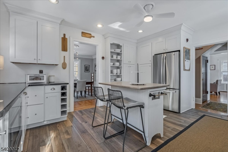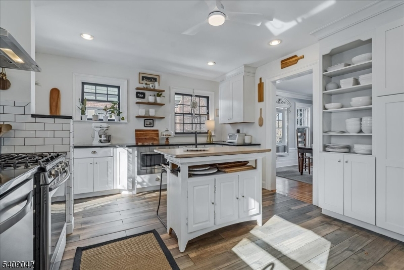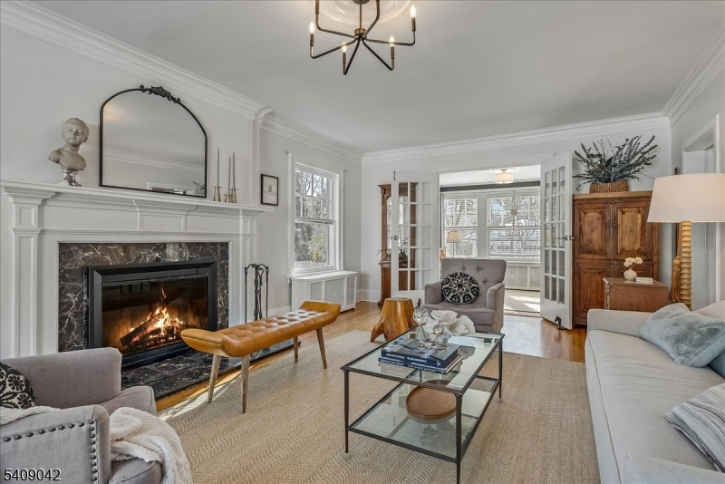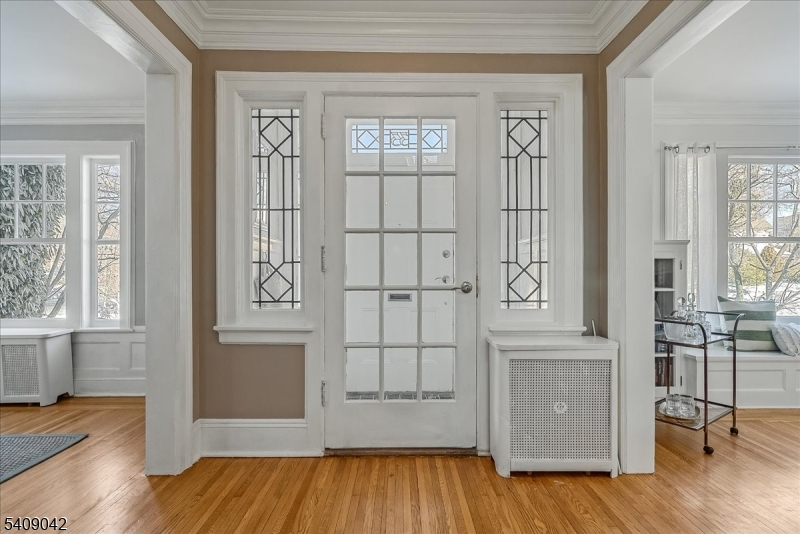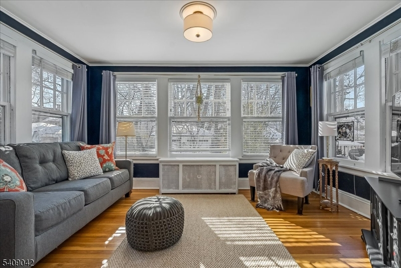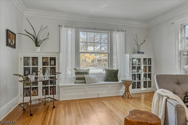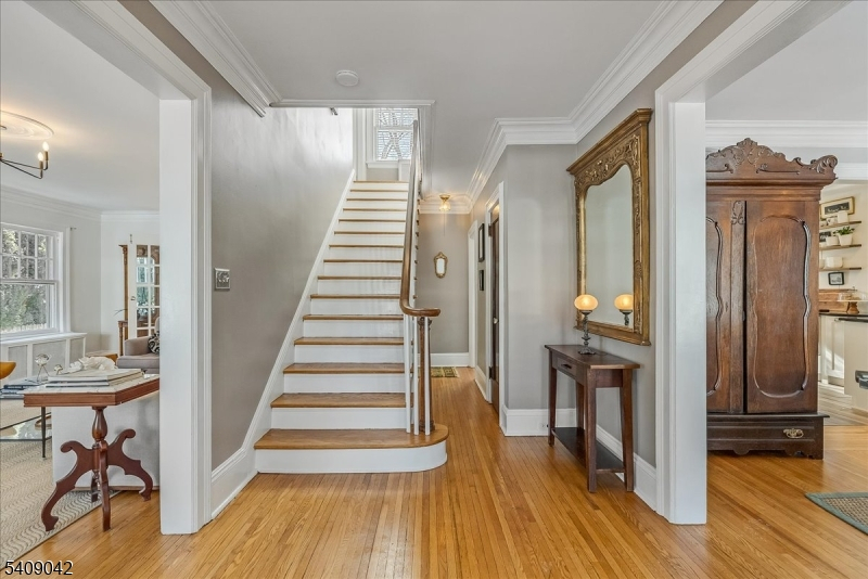 The appeal of this center hall Colonial is apparent from the moment you arrive. Graceful columns and leaded-glass windows create a warm welcome to this beautiful home that blends classic elegance with thoughtful modern updates. Inside, the living room invites you to relax on the cozy window seat framed by original built-in bookcases, oversized windows, and a functioning wood-burning fireplace perfect for chilly evenings. The sunroom with French doors provides additional space for work, play, or lounging. The thoughtfully updated kitchen features classic subway tile, ample storage, and an easy flow into the dining room, where crown molding adds a touch of sophistication. Step outside to the expansive back deck overlooking the yard with mature plantings and a two-car detached garage. A convenient powder room and hall closet complete the first floor. Up the wide, stately staircase, you'll find four generously sized bedrooms, each with double exposures that fill the rooms with natural light. A beautiful, large full bath offers timeless finishes, and two hall closets provide great additional storage. The amenities continue in the spacious finished basement, offering fantastic ceiling height, a bonus full bath, a laundry room, and even a dedicated hobby room plus extra storage. Designed for comfort, creativity, and connection, this home is ready to welcome its next chapter. Don't miss the opportunity to make it yours!