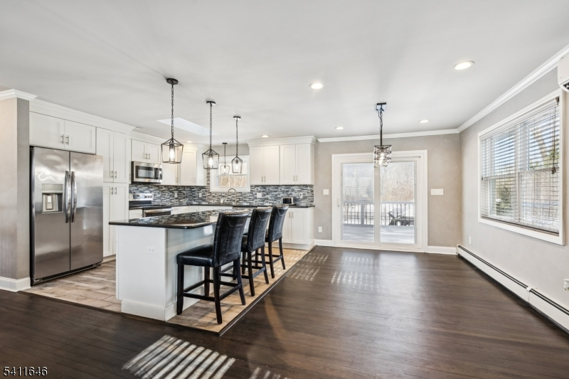 Set on beautiful manicured grounds in sought-after Farmingdale, this refined residence offers close to 3,000 sq ft of beautifully updated living space. The open-concept main level features an updated kitchen, dining,and living areas with an electric fireplace and sliders to a newer deck overlooking a backyard oasis with an saltwater pool. Bedrooms on both levels provide flexibility for multi-generational living, the lower level offers a spacious family room, kitchen, laundry, & two bonus rooms with a private entrance. 3 Full baths with heated floors. Brand-new boiler installed in January, refinished hardwood floors throughout, newer septic system(2025), well(2025), & HWH. Roof, siding, and windows approx. 6 yrs old. The entire property fenced, for privacy, includes a detached 2 car garage w/heat, A/C, epoxy floors.