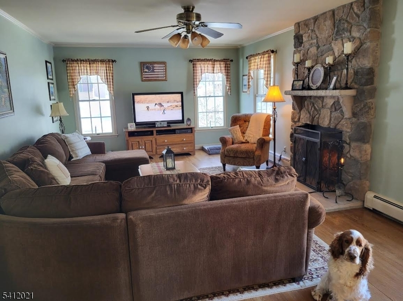 Well-maintained 4 bedroom, 2-1/2 bath center hall colonial on 0.344 acres in the most desirable Olde Milford Estates in West Milford. Living room, formal dining room, custom-built eat-in-kitchen, family room with wood-burning fireplace, entrance foyer with porcelain tiles, master bedroom with all-wood walk-in closet, 2-car oversized garage, workshop, full attic ideal for storage. Anderson double pane tilt-out windows, crown molding, partial wainscoting raised panels, fluted molding with rosettes, hardwood floors, ceiling fans. Enjoy the outdoors with a raised deck, patio, koi pond with waterfall , professionally `landscaped grounds, 8'x12' storage shed with electricity & lights. Includes refrigerator, range, oven, microwave oven, dishwasher, garbage disposal, reverse osmosis drinking water, water softener & filter, central vac, 2-zone heat and central air, ceiling fans.