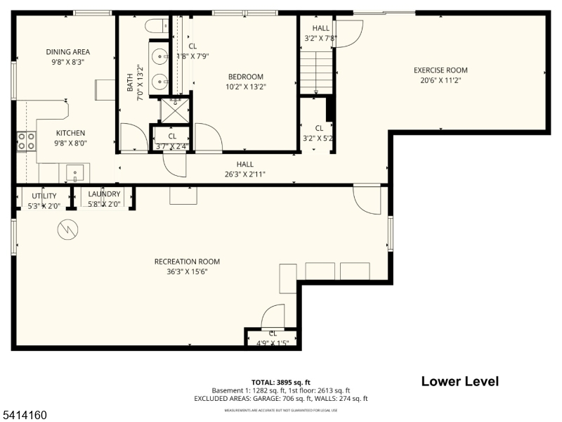 1 Bedroom, Bath(s) Other, Dining Room, Exercise Room, Kitchen, Rec Room, Walkout
