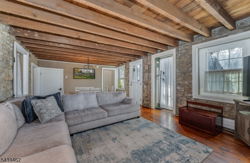 Set in the charming town of Finesville, this 1800s stucco and stone colonial offers a thoughtful blend of original character and modern updates.Inside, the living and dining spaces feature exposed stone walls, beamed ceilings, and wide pine floors, centered around a pellet stove with a classic mantel. The kitchen, located in a newer addition, includes granite countertops, custom cabinetry, a pantry, and radiant heated floors that extend into the adjacent powder room.Upstairs offers three bright bedrooms. Two in the original section feature pine floors, deep window sills, and access to a walk-up attic. The third bedroom and full bath, in the newer portion, include bamboo flooring, radiant heat, and a tiled bath with exposed stone and a walk-in shower.A private patio and hot tub sit just off the kitchen, overlooking a backyard filled with perennials. Additional updates include replacement windows, storm doors, newer septic and well, and updated heating and electric. Close to Alba Vineyard, the Delaware and Musconetcong Rivers, and nearby river towns for dining, shopping, and the arts. Easy access to NYC.