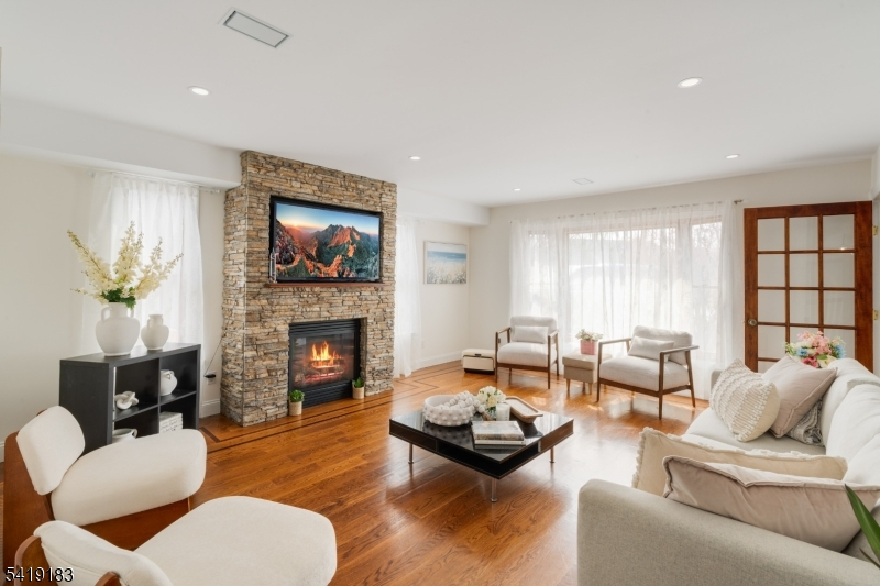 Welcome to 8 Dean Court where comfort, connection, and everyday living come together. Nestled on a quiet cul-de-sac, an uncommon setting in Rutherford, this thoughtfully designed contemporary Colonial offers approximately 2,800 sq ft of inviting living space. A welcoming entry opens to a layout that flows effortlessly between living, dining, and kitchen areas, anchored by a fireplace room that creates a warm setting for both daily living and gatherings. The kitchen features cherry cabinetry, granite countertops, stainless steel appliances, and a center island, complemented by white oak hardwood floors throughout. A rear entry with mudroom, powder room, and laundry area adds everyday convenience. Upstairs, the primary suite includes spacious closets and a bath with a hot sauna and double vanity. Two additional bedrooms and a full bath complete the level, along with an open overlook. The top floor offers a versatile space suited for additional living, work, or recreation. The expansive backyard includes a hot tub spa, patio, and paver walkways, offering space for outdoor enjoyment. A detached garage adds storage and functionality. Located just moments from schools, parks, shops, and dining, with nearby bus and train access to NYC and an approximately 20-25 minute drive to Manhattan, this home offers both accessibility and a well-connected setting.