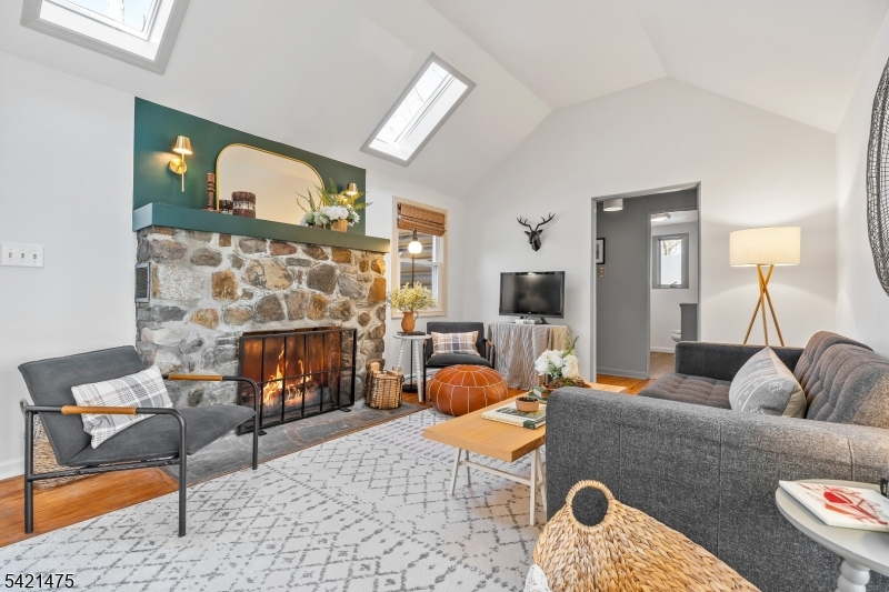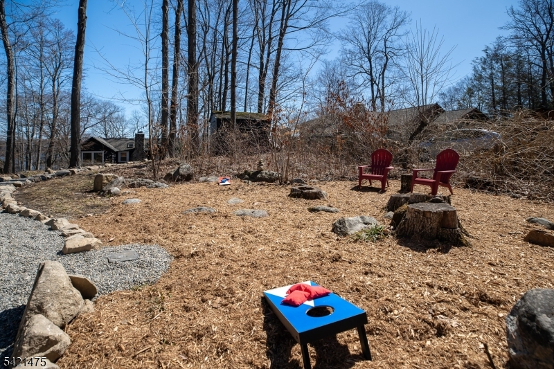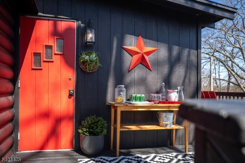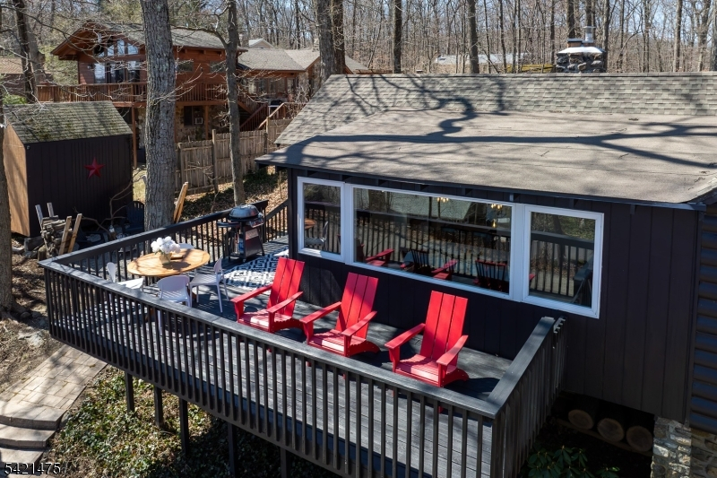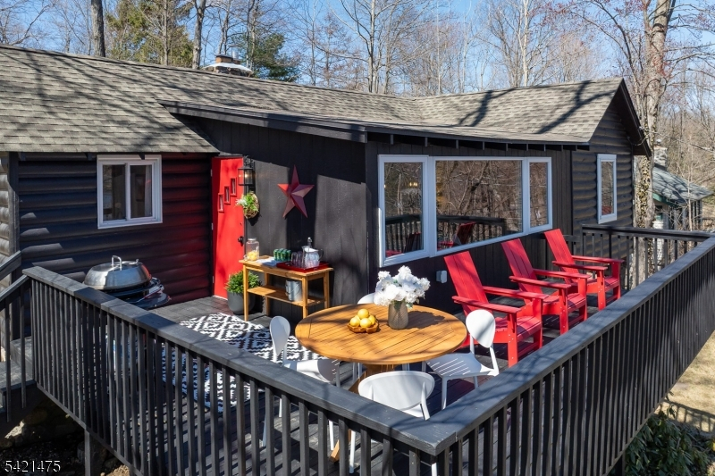 Awaken to spectacular sunrises from this chic, designer cabin in sought-after Highland Lakes. Set on a wooded, double-deep .36-acre lot with dual street frontage (Canadawa), this stylish home delivers cozy sophistication and expansive lake views. Access the lake from either direction leaving the home from two nearby freeways! Start your mornings with sunrise yoga on the expansive east-facing deck. Inside, modern elegance meets rustic charm with two inviting bedrooms and a sleek, updated bathroom. Relax and unwind in the beautifully appointed living area, ideal for cozy winter evenings by the stone hearth. Step outside to discover your own enchanting Path Henge, perfectly aligned for memorable summer sunsets. Gather around one of two fire ring areas and enjoy friendly competitions on the level area perfect for bean bag toss. Keep your beach toys and garden tools stowed out of sight in the unfinished basement or detached storage shed. Enjoy outdoor recreation year-round with private access to five pristine lakes, seven sandy beaches. Activities for all interests and ages; sailing, racket sports, hiking, fishing, swimming, art, music, play group and more. Winter sports are a short drive away at Mountain Creek. With furnishings available separately, this turnkey retreat promises effortless enjoyment. Roof replaced in 2020, Passing Septic Report from 2025 - move in with confidence and embrace lake community living at its finest!