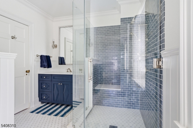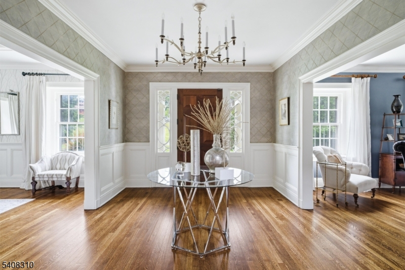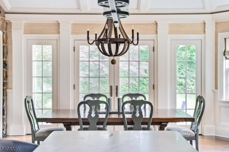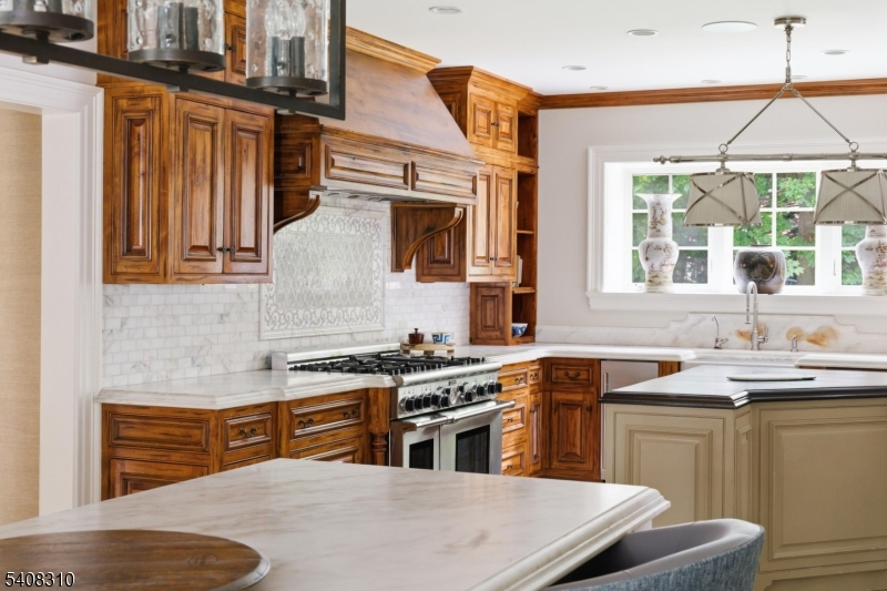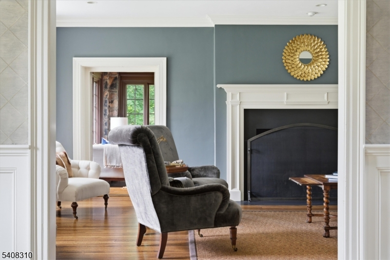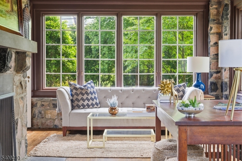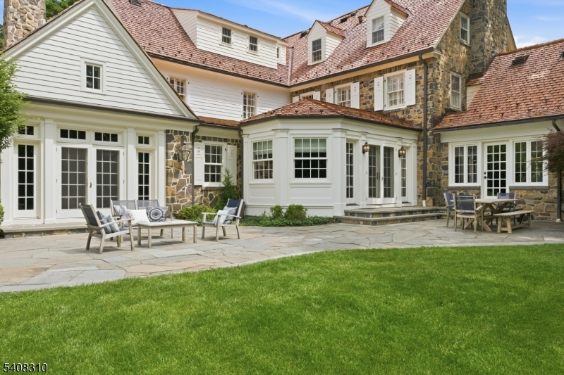 Situated on nearly an acre in Old Short Hills, this timeless fieldstone Colonial offers a rare balance of architectural significance and livability. From its classic facade to elegant proportions, the home invites you in with presence and warmth. Inside, a wide entry sets the tone. The living room, anchored by a wood-burning fireplace, flows into a sunroom with three stone walls and its own fireplace, offering a year-round connection to the outdoors. Light fills the formal dining room through multiple exposures, while a coffered ceiling adds refinement. A butler's pantry opens to a large kitchen designed for both form and function, with custom cabinetry, professional appliances and a breakfast room framed by stone and windows. French doors open to a bluestone patio and a backyard with room for a pool. A vaulted family room with exposed beams brings volume and ease, while a private office, mudroom and powder room complete the first floor. Upstairs, the primary suite offers a quiet escape with a spa-like bath and a custom walk-in closet. Three more bedrooms include two with en suite baths and one with an office. The third level continues with three bedrooms, two full baths and a lounge with versatility. The lower level includes a recreation room, gym, walk-in wine cellar and powder room, adding flexibility to any lifestyle. With a new cedar shake roof and a setting just blocks from town and the train, this is the rare home that pairs tradition with possibility inside and out.